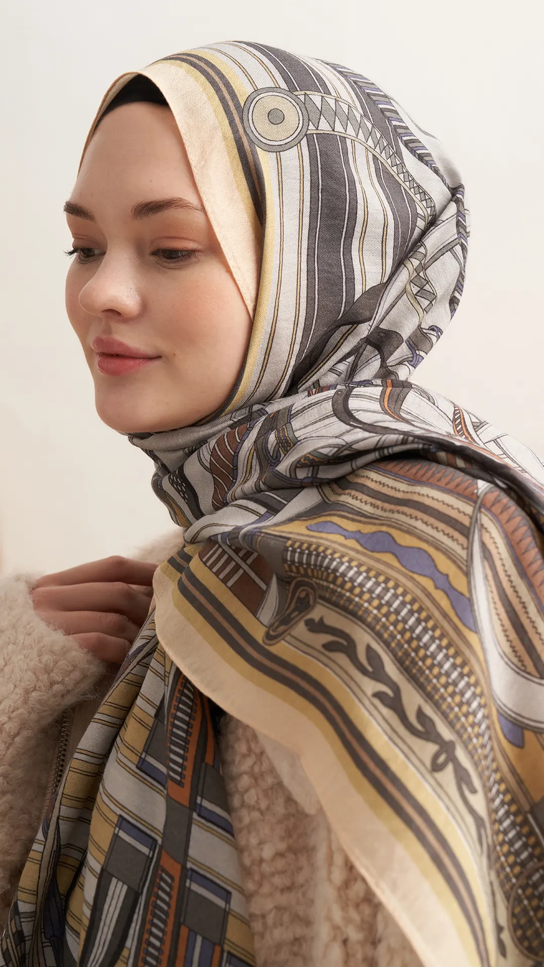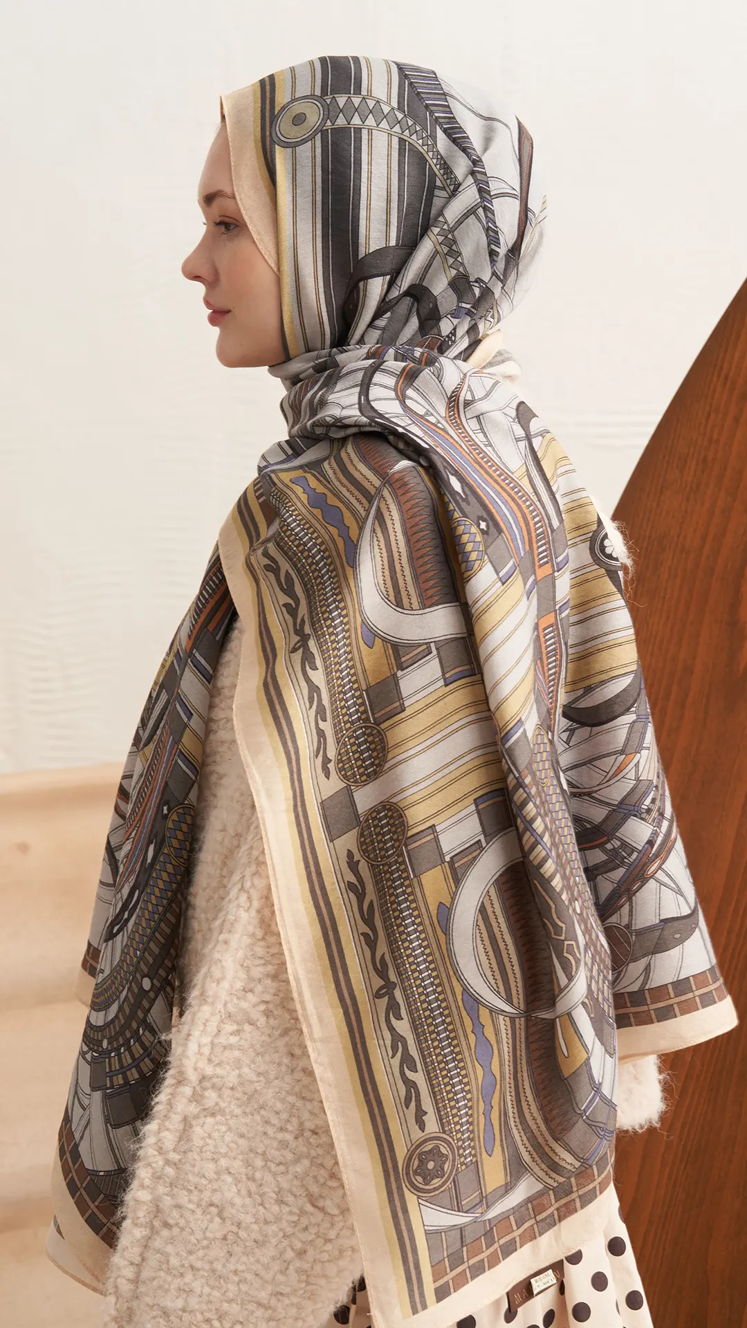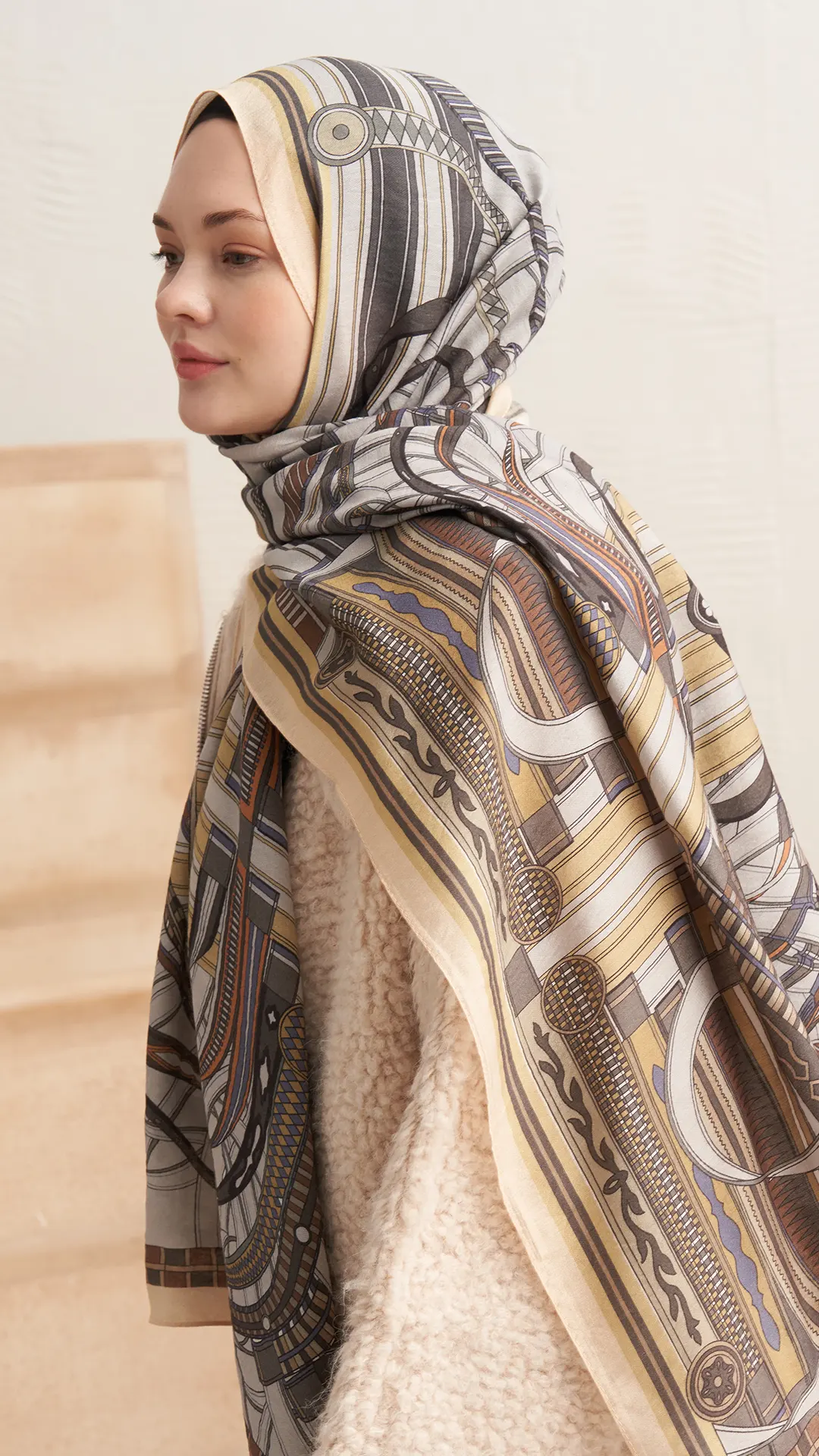 Retro Grid Yün İpek Şal